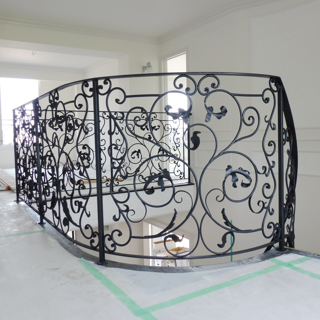 概要:注文住宅の螺旋階段とそれに続く吹抜け部分の手摺です。先に決定していた窓手摺(他社製既製品)に雰囲気の似たデザインというご要望でした。その後予算の関係でリーズナブルな提案いくつかを出しましたが、最終的にお客さまが倉庫に見えてパーツを御覧になり、元案に戻りました。分割で納品、現場溶接組立後ポリパテ修正・タッチアップ塗装仕上しました。