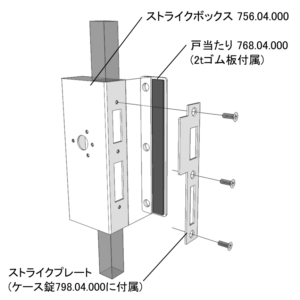 ● ストライクプレートはケース錠798.04.000に付属しています。