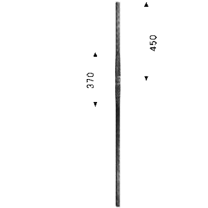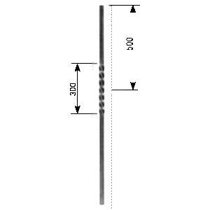 摘要:プレーン角棒の中ほどを潰した後ねじり加工した親柱です。潰したところには短い線の模様が入っています。