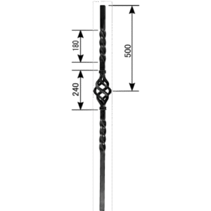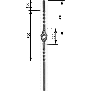 摘要:プレーン角棒の中ほどにバスケットを挿入、その上下にねじり加工を入れた親柱です。
